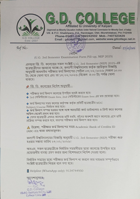 NEP 4th Semester Exam Form Fill-up Notice-2025