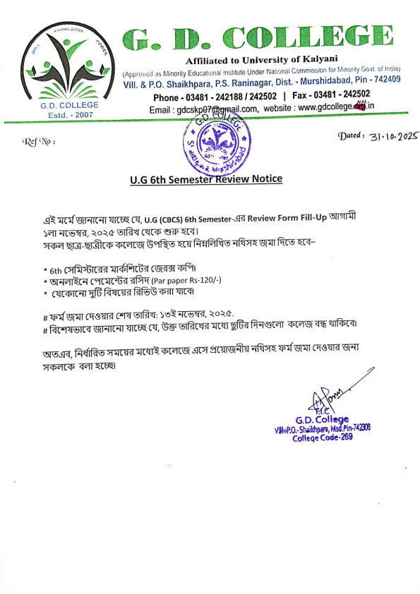 Ug 6th Sem (cbcs) Exam form fillup notice